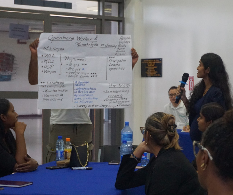 Every group named an updated national basemap as their top priority. Beyond that, the needs that surfaced repeatedly included a high-resolution Digital Terrain Model (DTM) for flood and drainage planning, improved cross-ministerial data sharing and coordination, and — critically — capacity building. The human dimension kept coming up: Suriname has capable, committed professionals working with GIS and spatial data across government. What they need is better data, better tools, and the training to use both effectively.